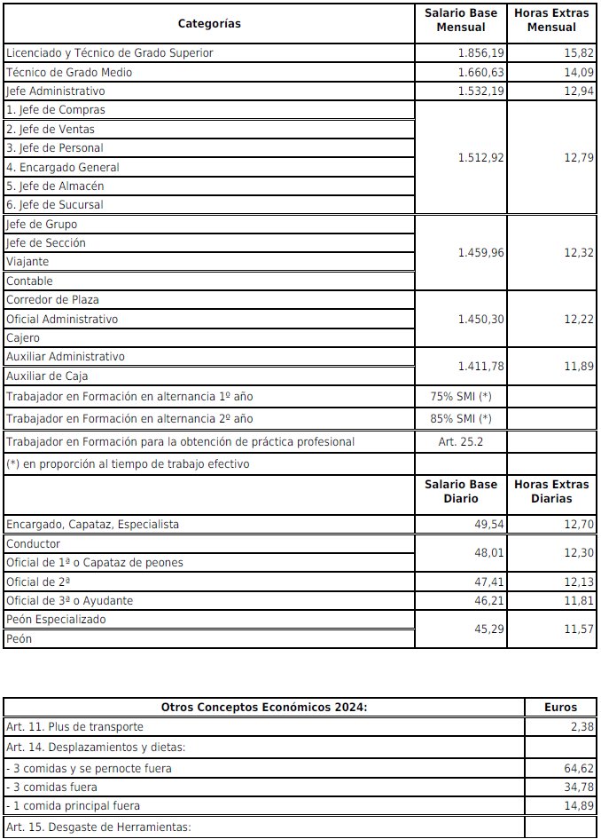 – La tabla de salarios para el año 2024 figura en el Anexo II y será el resultado de incrementar las tablas salariales de 2023 en un 1,75%.