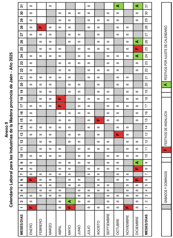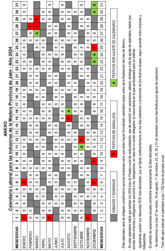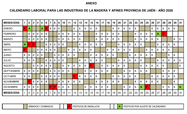 – El presente calendario está sujeto a las posibles modificaciones derivadas de la negociación del próximo convenio colectivo para las Industrias de la Madera y Afines de la provincia de Jaén.