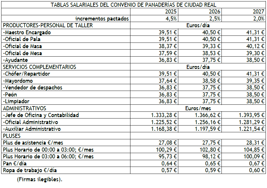 CONVENIO COLECTIVO PROVINCIAL PARA LAS INDUSTRIAS DE PANADERÍA DE CIUDAD REAL, PARA EL PERÍODO DEL 2025-2027.