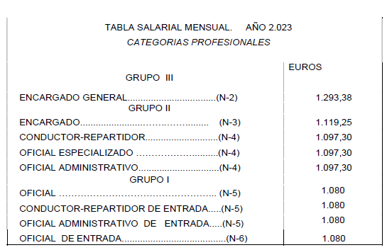 Nivel salarial.- Cinco (5): Categorías.- Oficial, Conductor-Repartidor de Entrada, Oficial administrativo de Entrada.