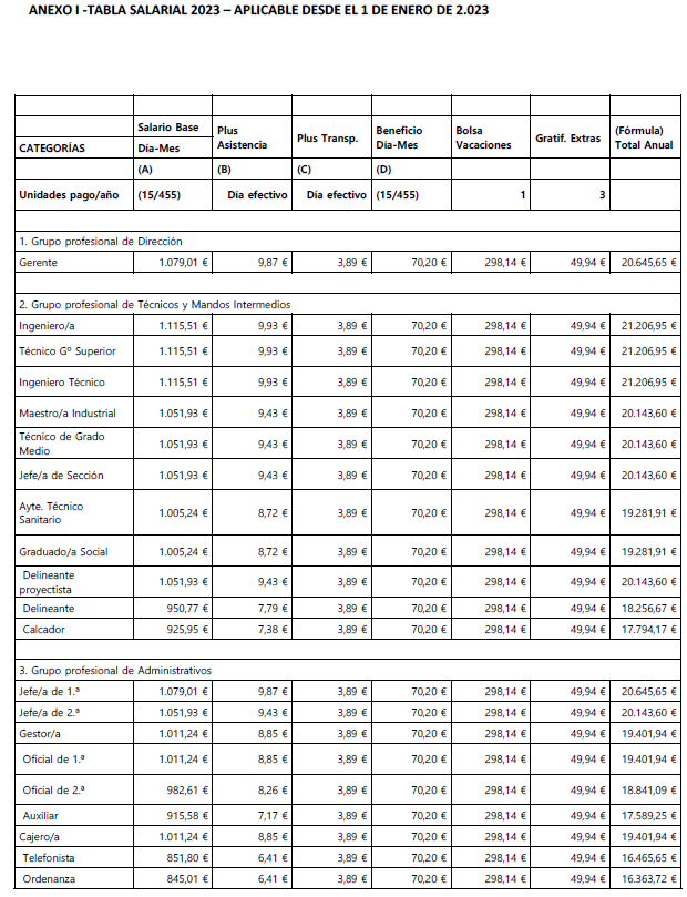 Para el año 2023 se establece un incremento salarial del 4% sobre las tablas salariales del ejercicio 2022, con efectos desde el 01/01/2023.