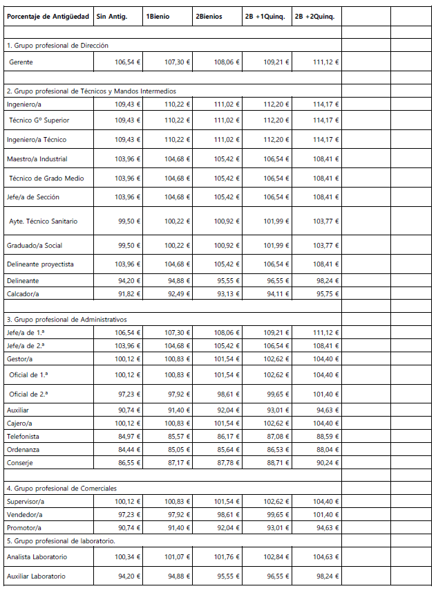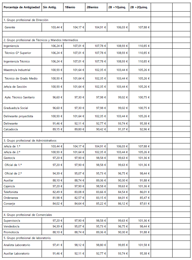 Para el año 2024 el incremento será del 3% sobre las tablas salariales del ejercicio 2023.