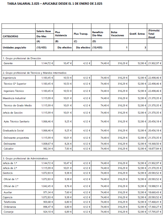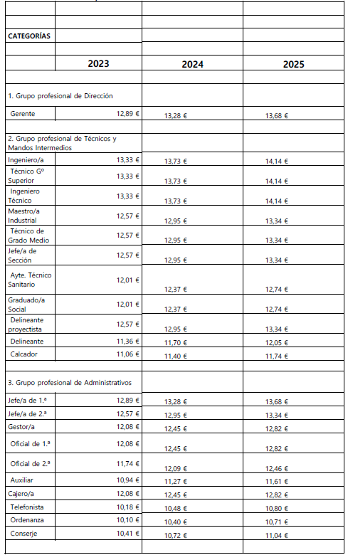 Para el año 2025 el incremento será del 3% sobre las tablas salariales del ejercicio 2024.