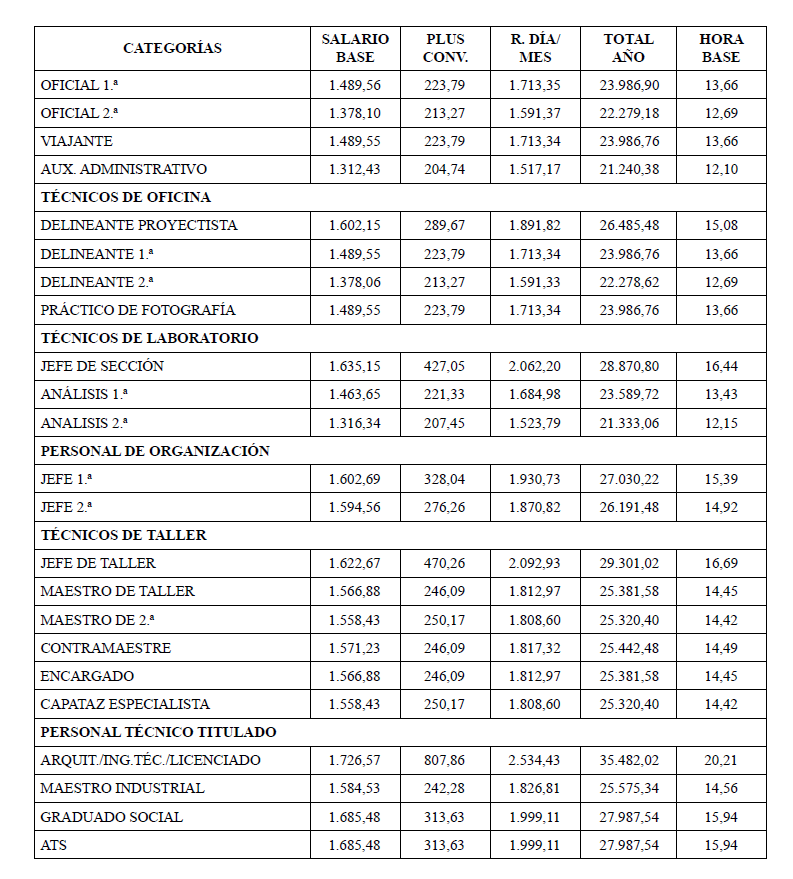 Las retribuciones salariales durante la vigencia del convenio serán las siguientes: