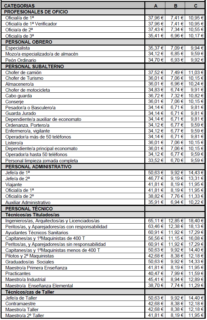 c) Plus triple turno (Art. 14.11): 3,18 euros.