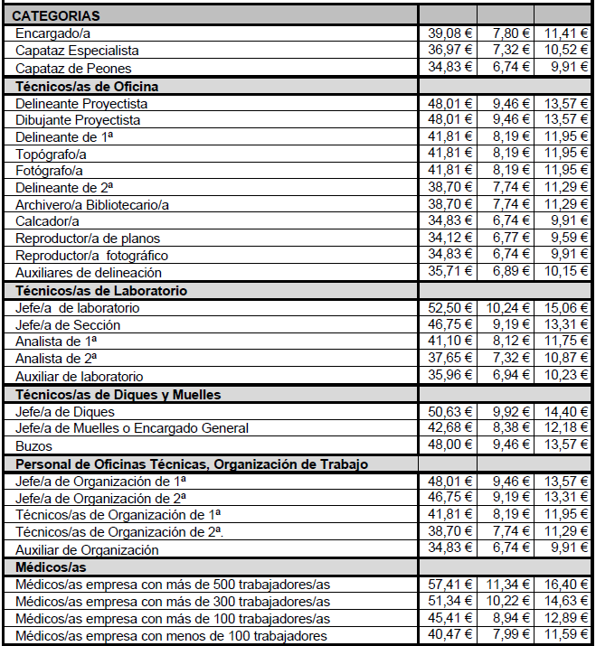 2) Aprobar las cuantías correspondientes al año 2025 para los pluses que el referido Convenio Colectivo regula y cuyos importes, a continuación, se reproducen:
