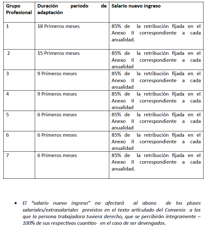 En estos dos últimos supuestos deberán aplicarse a las personas trabajadoras afectadas las condiciones establecidas en este Convenio, sin perjuicio de las que se regulen en los convenios colectivos de ámbito inferior que les sean de aplicación y, en particular, la tabla salarial que corresponda al grupo, categoría o nivel profesional de cada persona trabajadora.