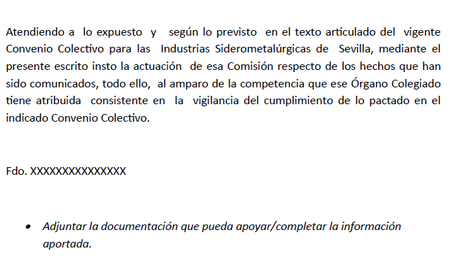 Dicha denuncia podrá ser efectuada por cualquiera de las organizaciones firmantes, comunicándolo al resto de estas en un plazo de 10 días.