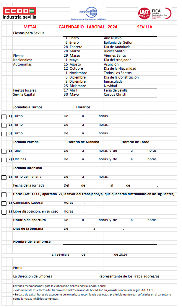 1) Aprobar el Modelo de Calendario laboral del Convenio Colectivo para las Industrias Siderometalúrgicas de la provincia de Sevilla correspondiente al año 2025 (Anexo IX).