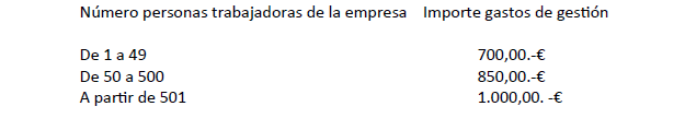 Aprobar los gastos de gestión que esta acreditación conlleva en función del número de personas trabajadoras de la empresa que presente la solicitud, y de la extensión y número de cursos que integren el plan propuesto, que serán los siguientes.
