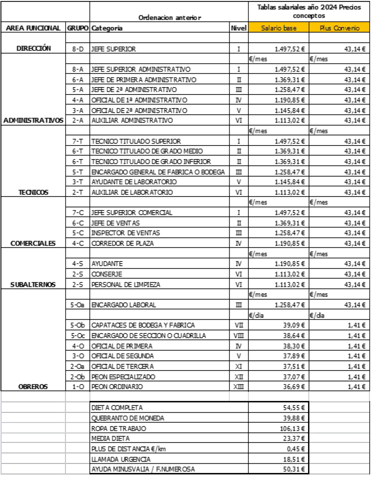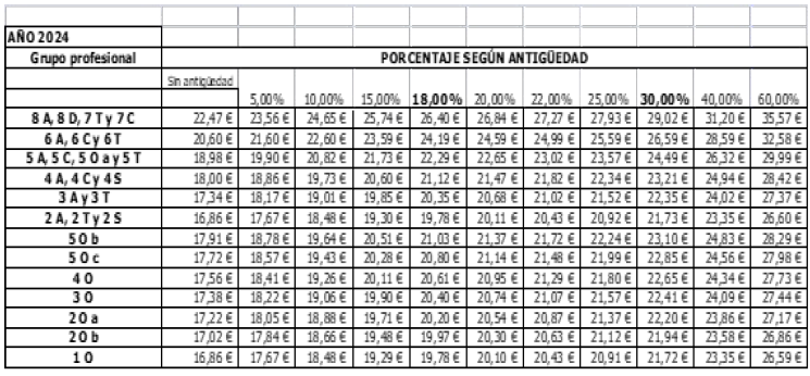 ANEXO I.- TABLAS SALARIALES PARA EL AÑO 2024.