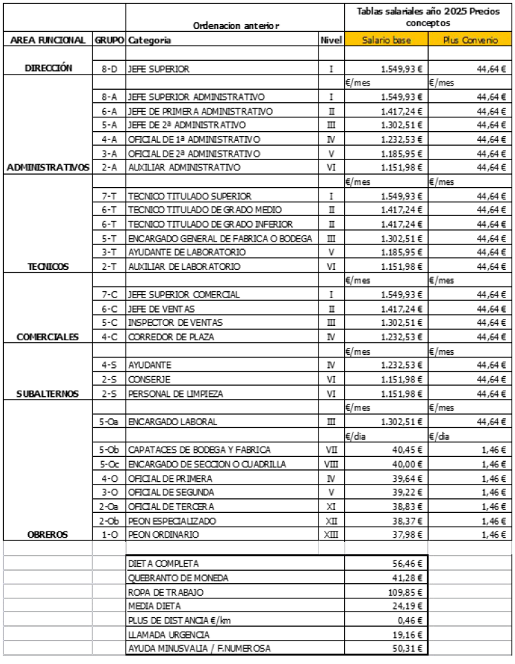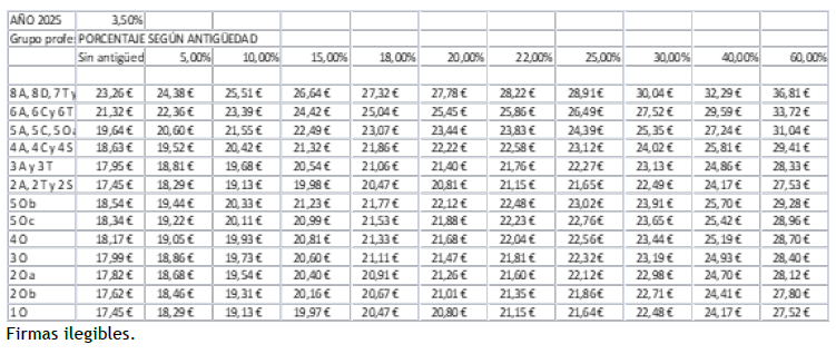 ANEXO II.- TABLAS SALARIALES PARA EL AÑO 2025.