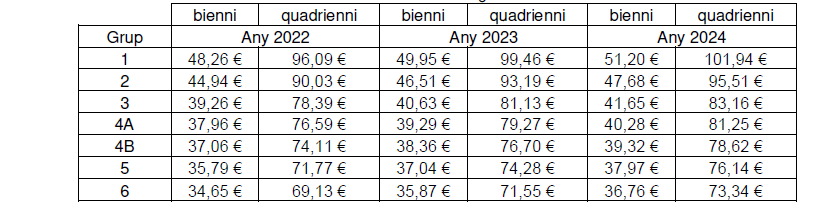 Des de la data de vigència d’aquest conveni, l’antiguitat s’ha de pagar d’acord amb la quantia que preveu la taula (annex 2) per a cada grup professional i no estarà limitada a un temps màxim.