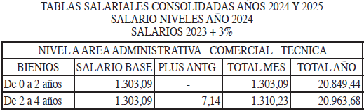 – Para el año 2024: incremento fijo a tablas del 3% con efectos retroactivos desde 01/01/2024.
