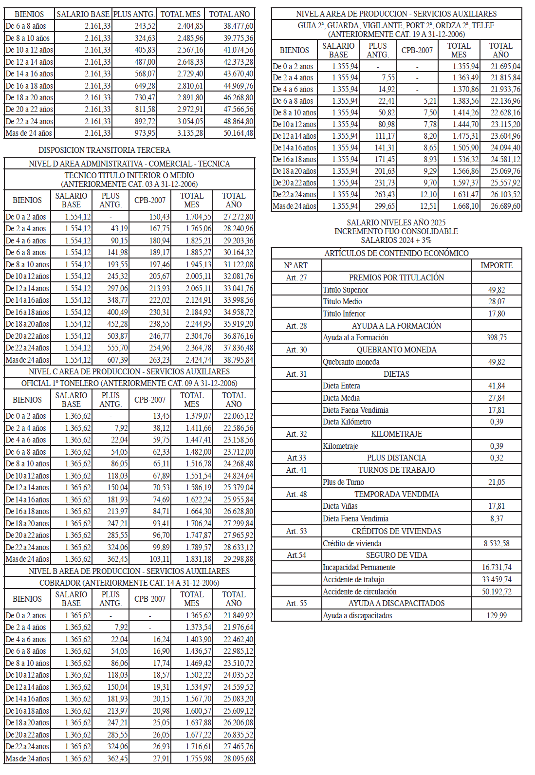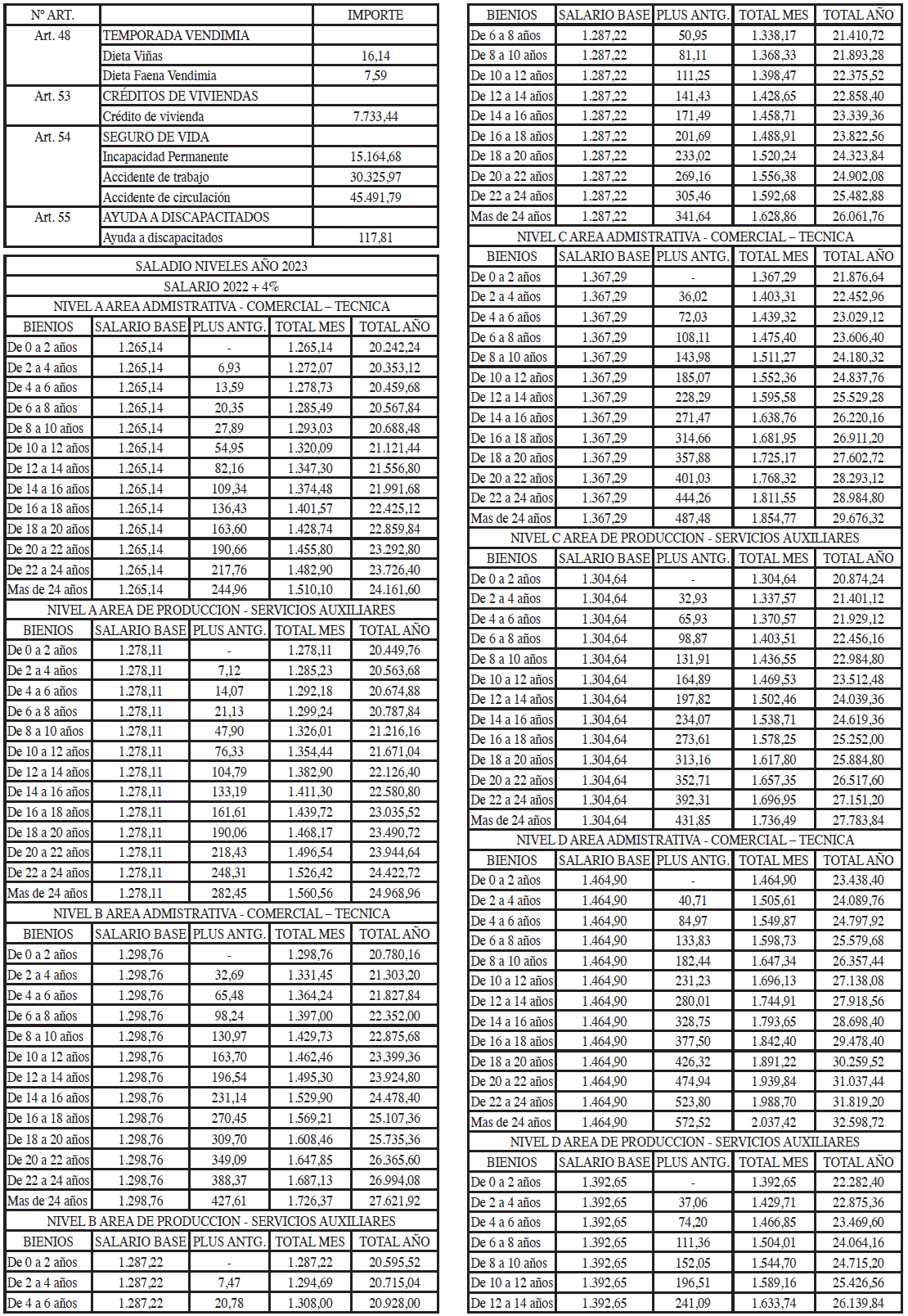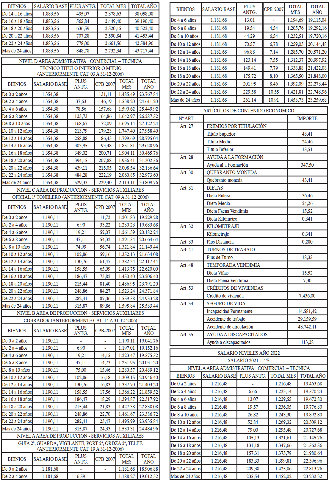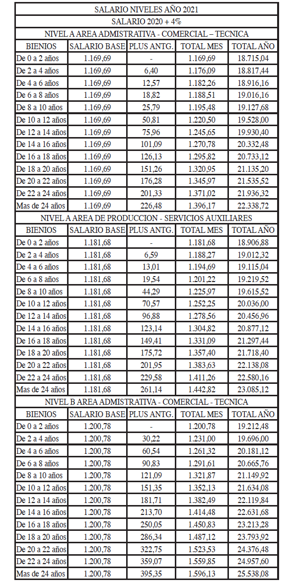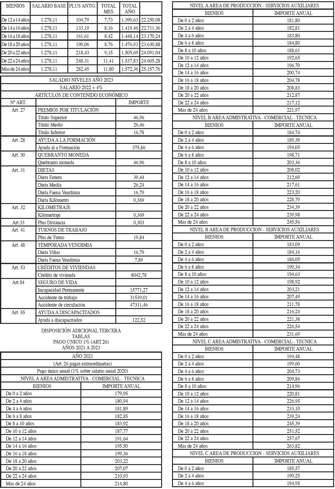 TABLAS SALARIALES CONSOLIDADAS AÑOS 2021 A 2023.