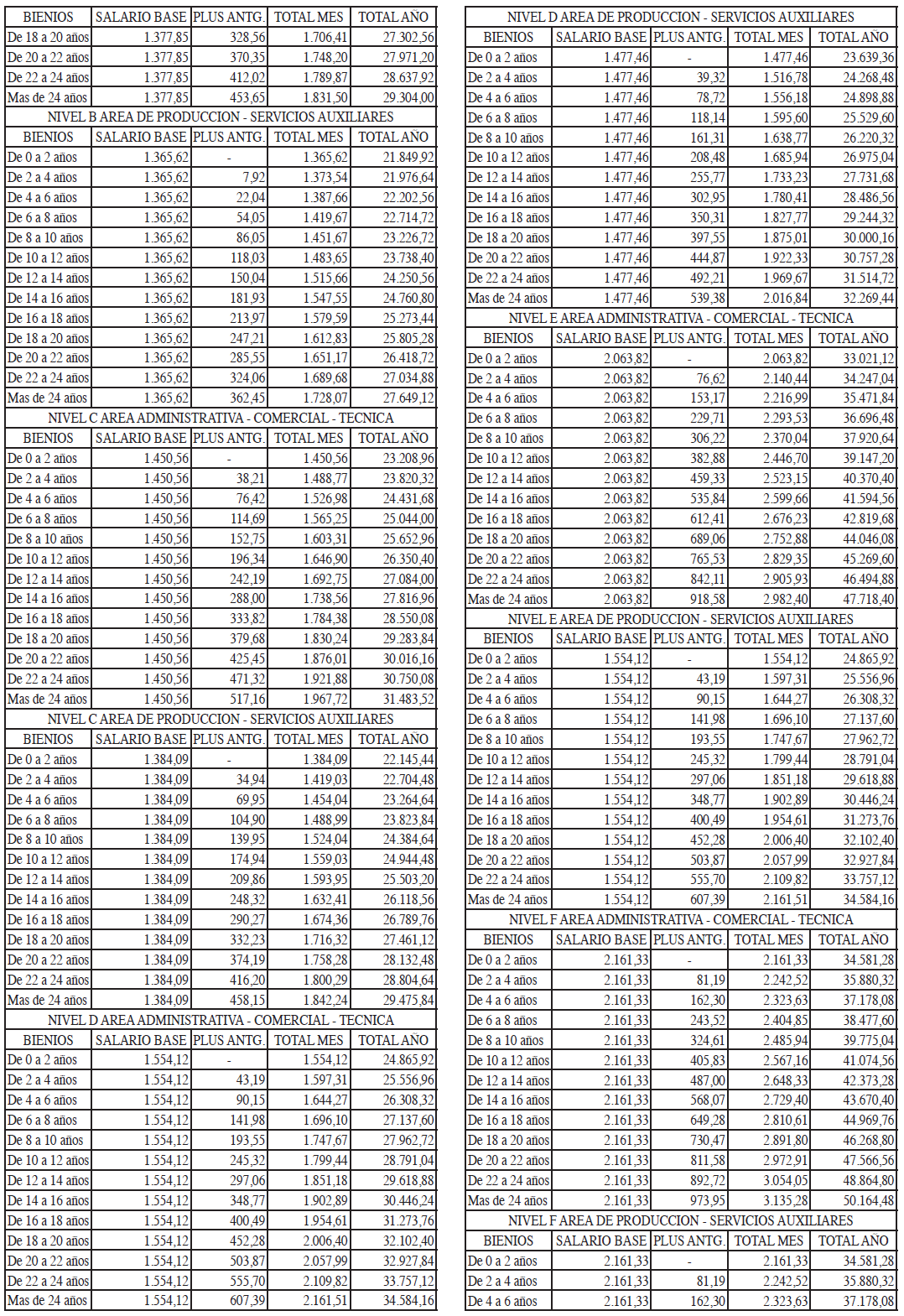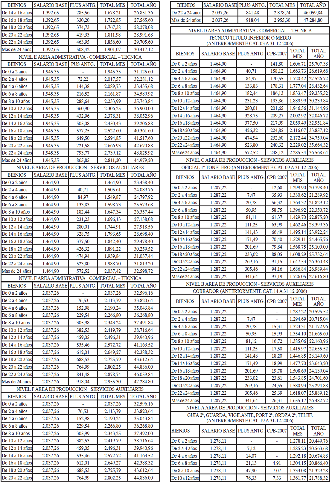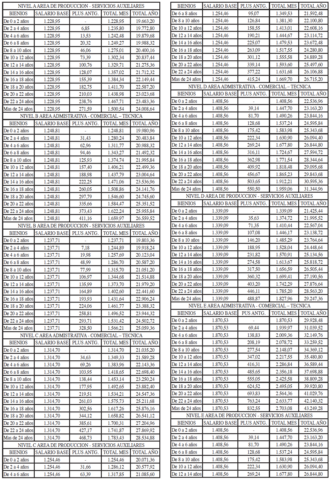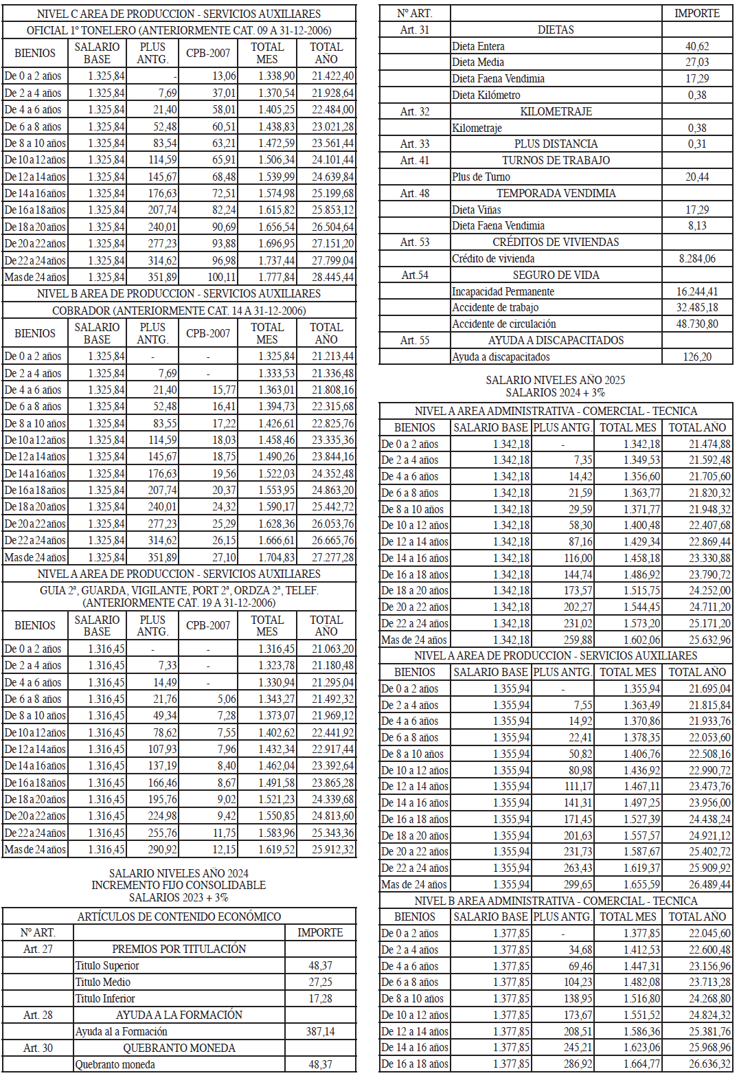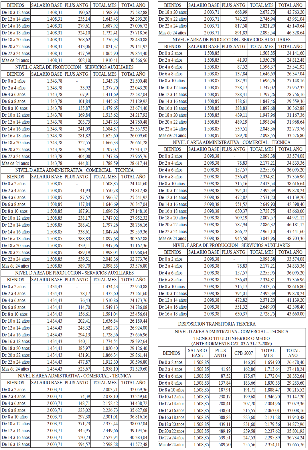 TABLAS SALARIALES CONSOLIDADAS AÑOS 2021 A 2023.