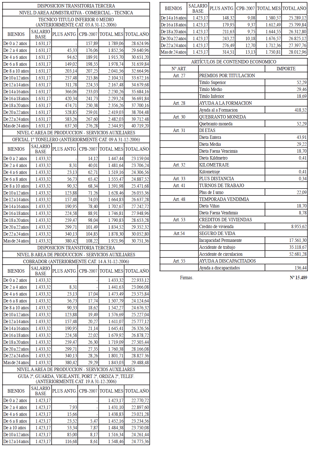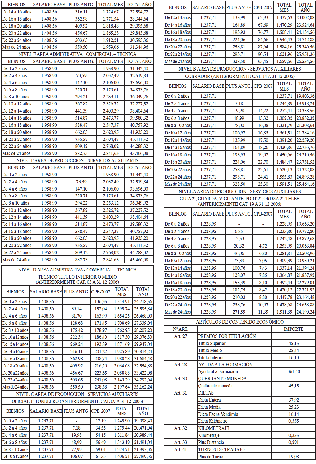 Se mantiene esta disposición tercera en su integridad mientras existan trabajadores que perciban el C.P.B.-2007, ya que recoge la adecuación a la nueva estructura salarial acordada en el XXVII Convenio Colectivo de la Vid y garantiza y define las condiciones de este complemento salarial: