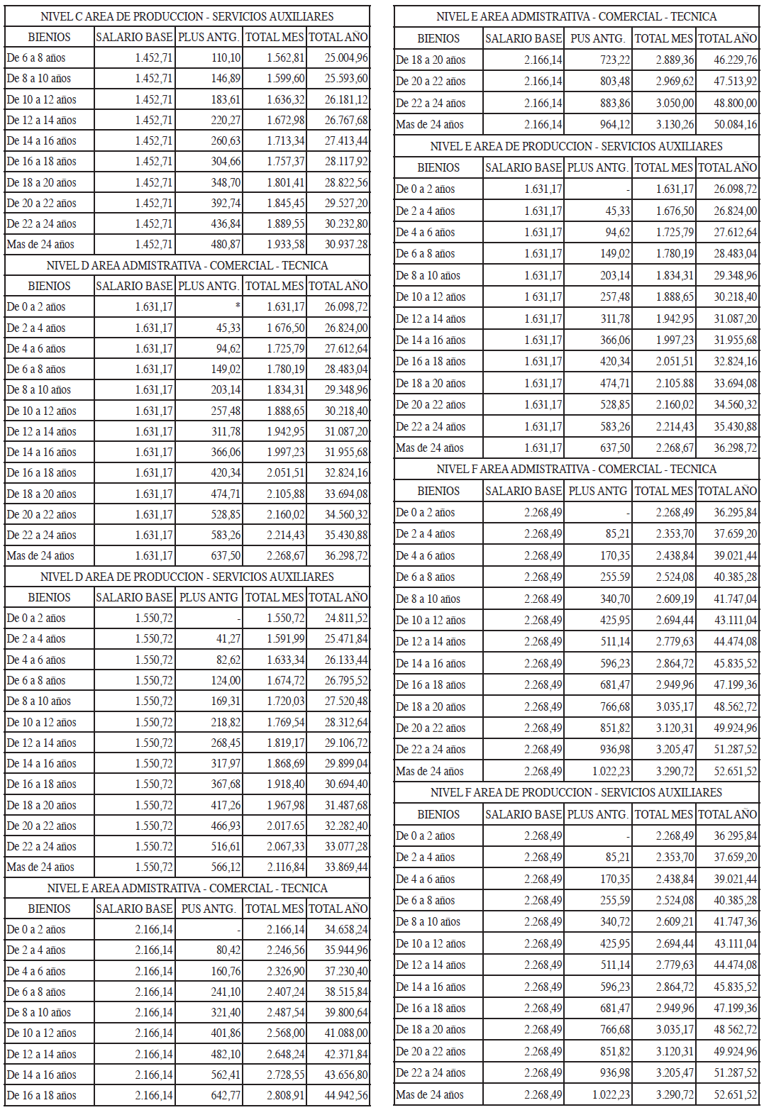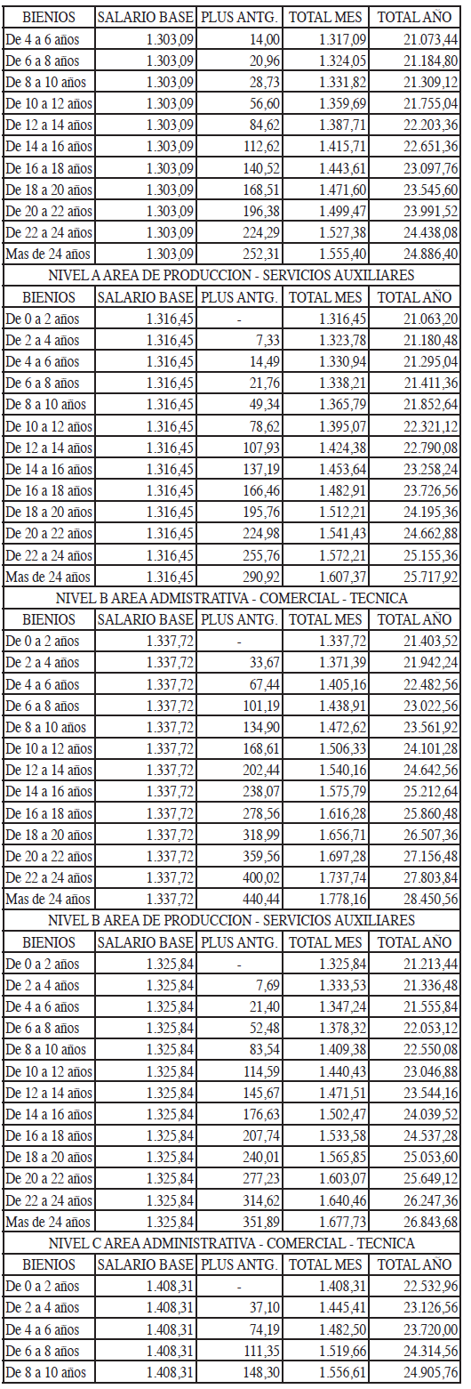 Apartir de la firma, las Direcciones de las empresas procederán a adecuarla estructura salarial actualmente existente a los niveles salariales que vienen determinados por el presente convenio colectivo, procediendo a transformar las nóminas de acuerdo con los criterios siguientes: