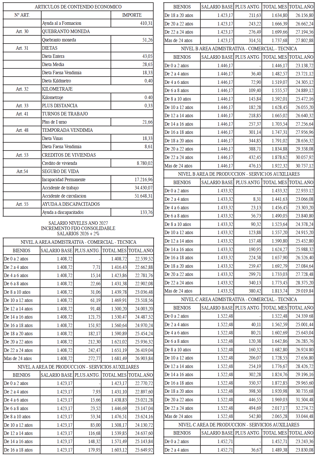 – Para el año 2027: incremento fijo a tablas del 2% con efectos retroactivos desde 01/01/2027.
