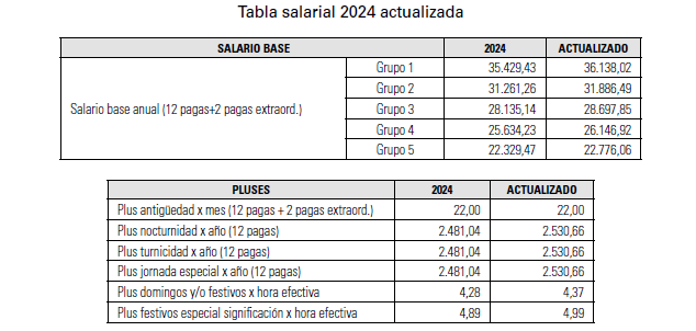 A continuación, tanto la asociación empresarial como las organizaciones sindicales han decidido adoptar un acuerdo para la actualización de las tablas salariales de 2024, acordando lo siguiente: