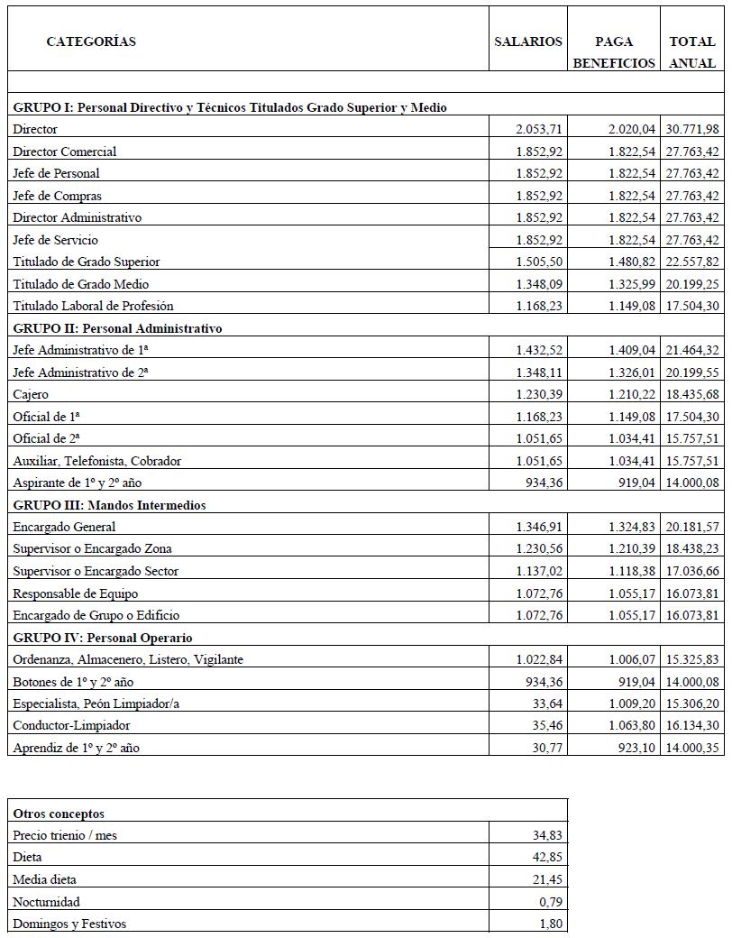 Dichos salarios corresponden a una jornada laboral completa. El personal que realice jornada laboral inferior a la establecida en el presente convenio, percibirá el citado salario a prorrata.
