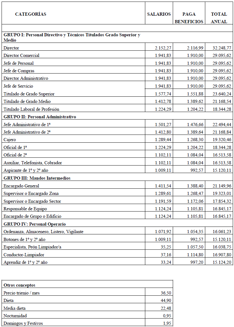 ANEXO II.- TABLA SALARIAL AÑO 2023.