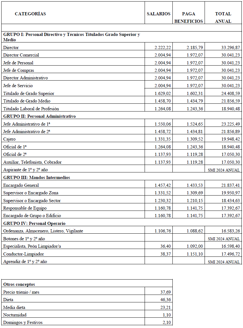 ANEXO III.- TABLA SALARIAL AÑO 2024.