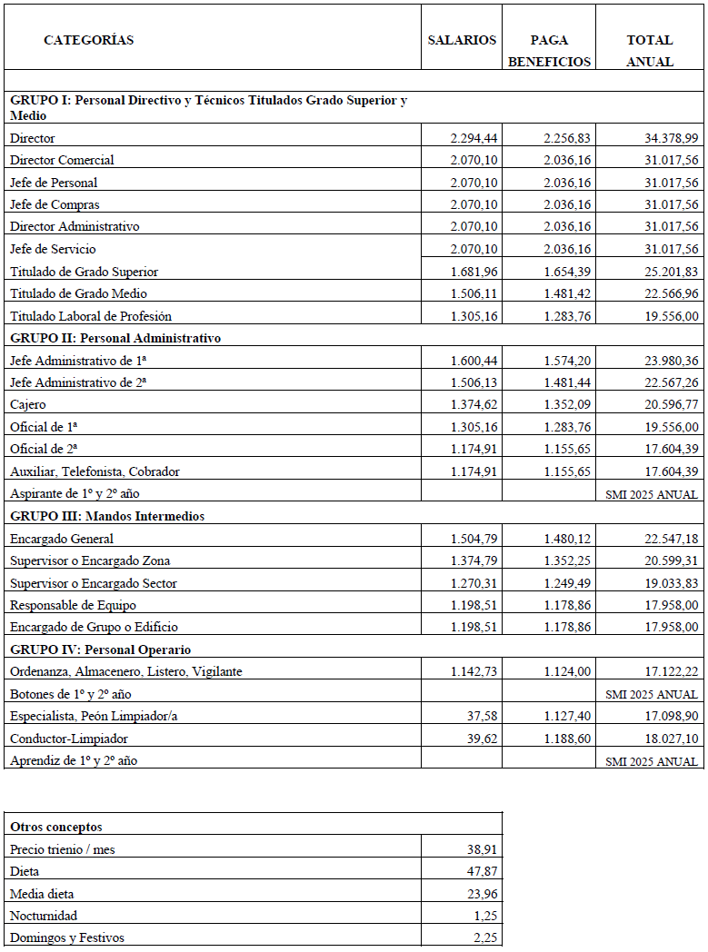 ANEXO IV.- TABLA SALARIAL AÑO 2025.
