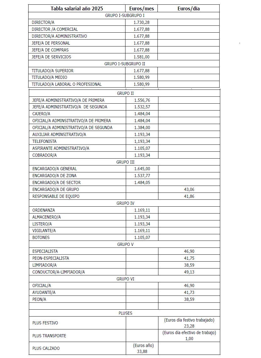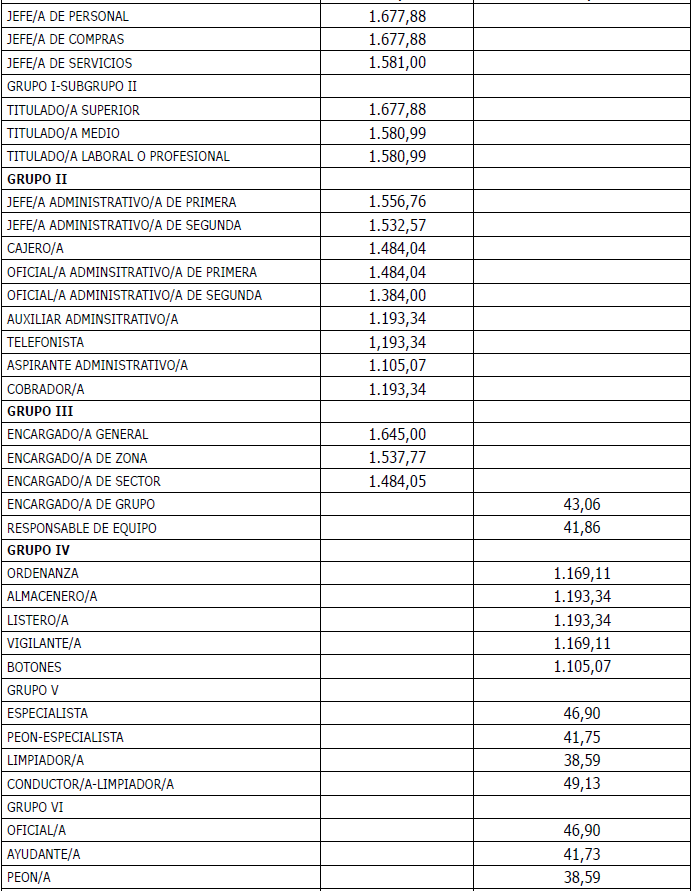 Primero.-Rectificar, a instancia de la comisión negociadora, los importes mensuales del Grupo IV de la tabla salarial del sector Limpieza de Edificios y Locales del Principado de Asturias para el año 2025, siendo la tabla salarial correcta: