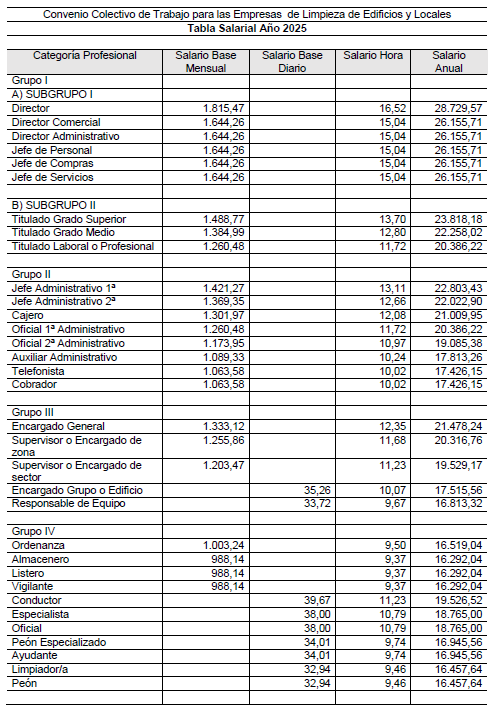 Dicho Salario Base corresponde a jornada laboral completa. El personal que realice jornada laboral inferior a la establecida en el presente Convenio, percibirá los citados salarios a prorrata.