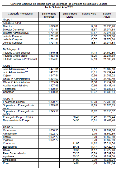 El Salario Base Mensual o Diario para cada Categoría Profesional, para el periodo del 1 de enero de 2023 al 31 de diciembre de 2026, será el que se especifica en las Tablas Salariales Anexas que se acompañan al presente Convenio para cada uno de los años, resultado de incrementar los siguientes porcentajes: