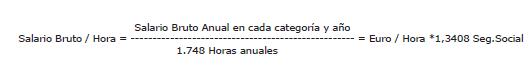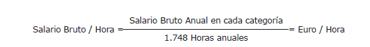 EJEMPLO: S. bruto anual de categoría: x Jornada anual efectiva = € hora