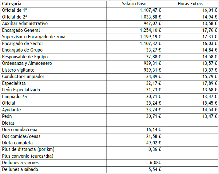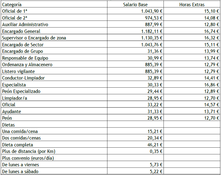 Por este concepto se abonará a los trabajadores/as un plus del 25 por ciento del salario base, regulándose su percepción de acuerdo con lo que establece el Acuerdo Marco Sectorial del Sector de Limpieza de Edificios y Locales.