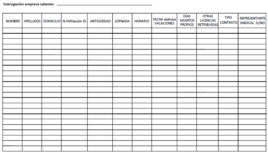 – Subrogación del personal.
