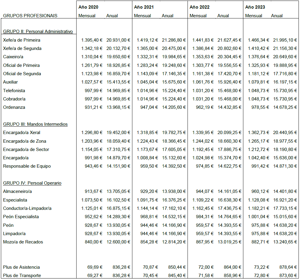 Os salarios serán os que se reflicten nas táboas salariais anexas.