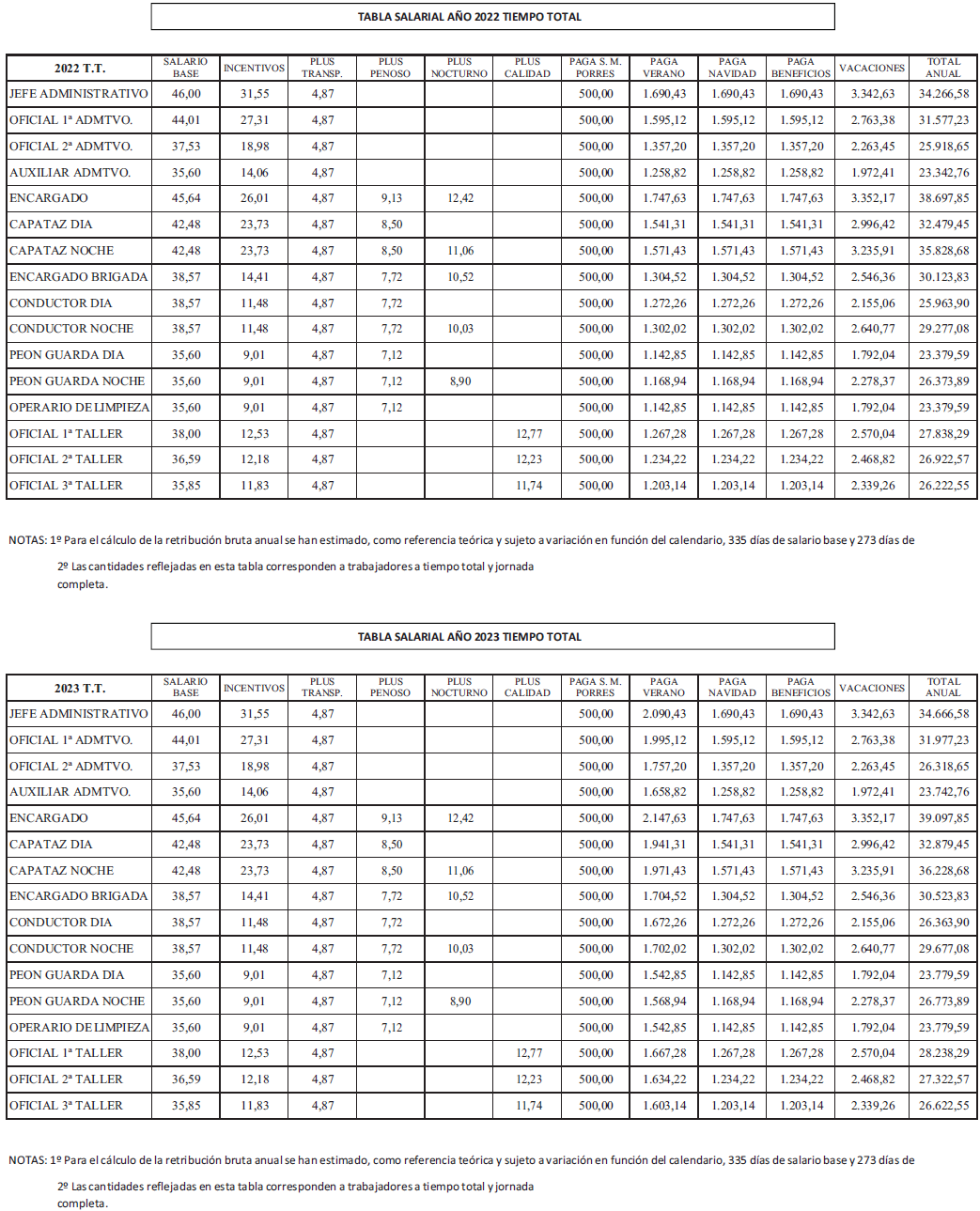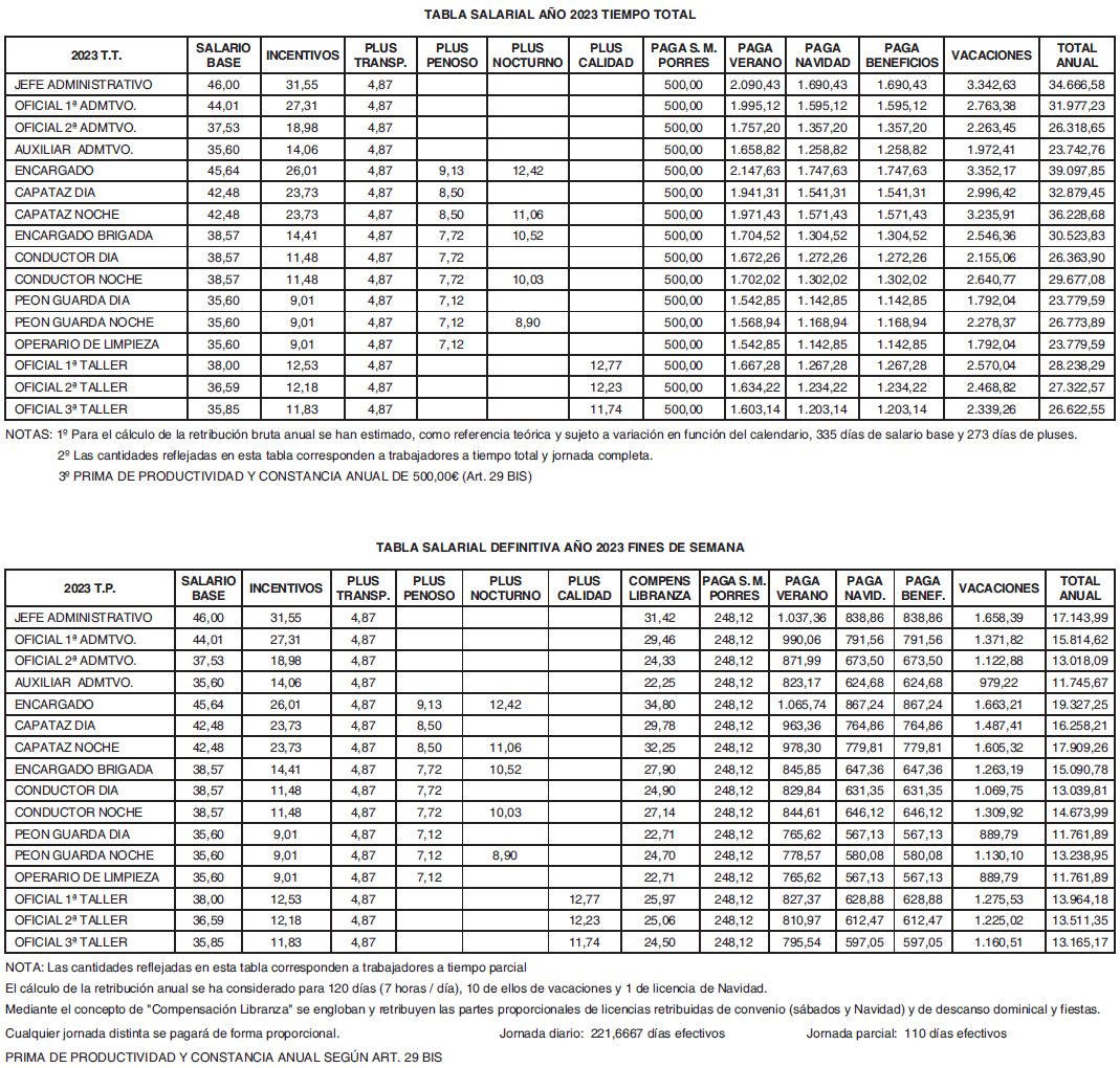PRIMERO. – TABLA SALARIAL DEFINITIVA 2023.