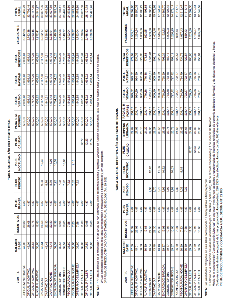 PRIMERO. – TABLA SALARIAL DEFINITIVA 2024.