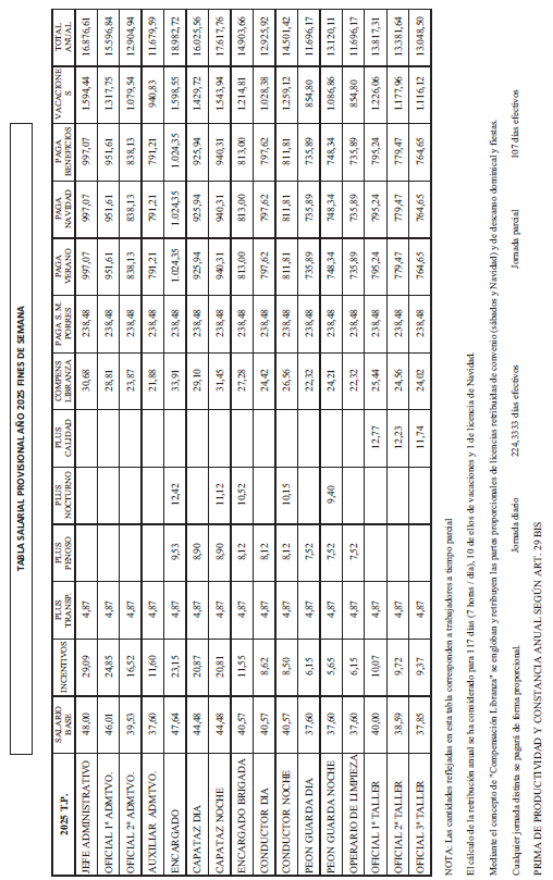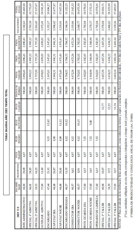 PRIMERO.- TABLA SALARIAL DEFINITIVA 2025.