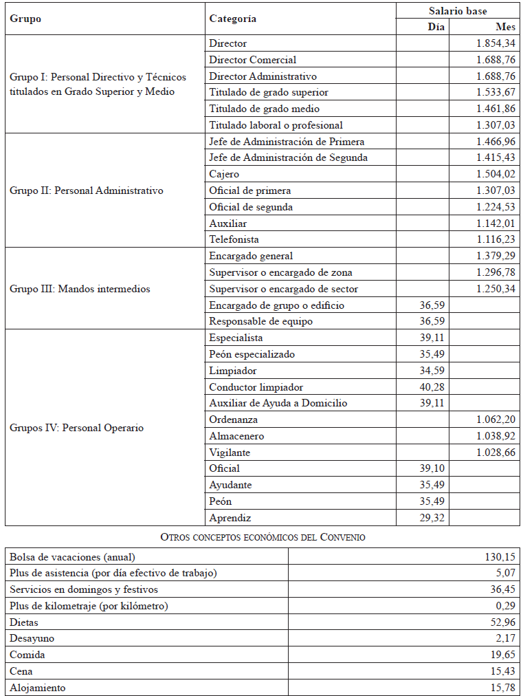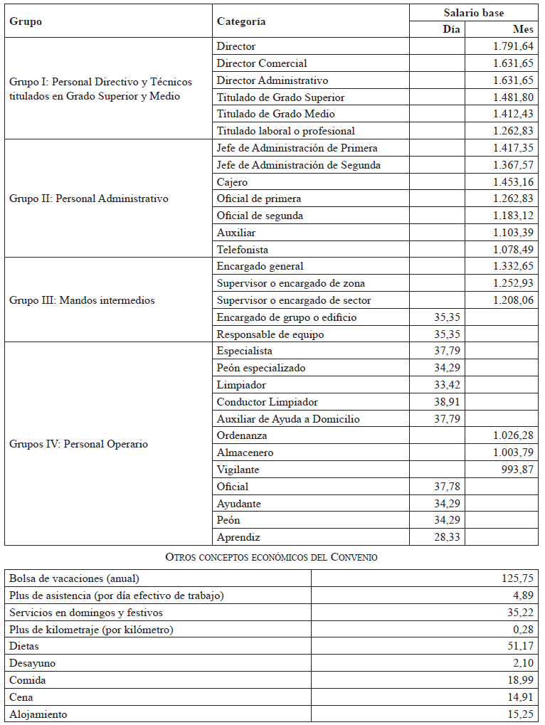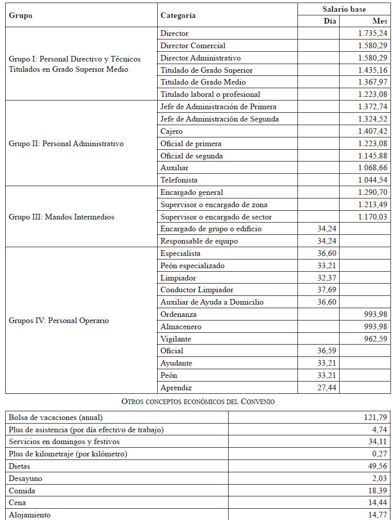 TABLA SALARIAL AÑO 2026 (INCREMENTO ECONÓMICO DEL 3,5 % SOBRE TABLAS 2025). EFECTOS ECONÓMICOS 1 DE ENERO 2026.
