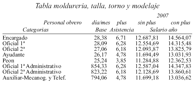 ANEXO D. MOLDURERIA, TALLA, TORNO Y MODELAJE. TABLA Y DEMAS CONCEPTOS RETRIBUTIVOS