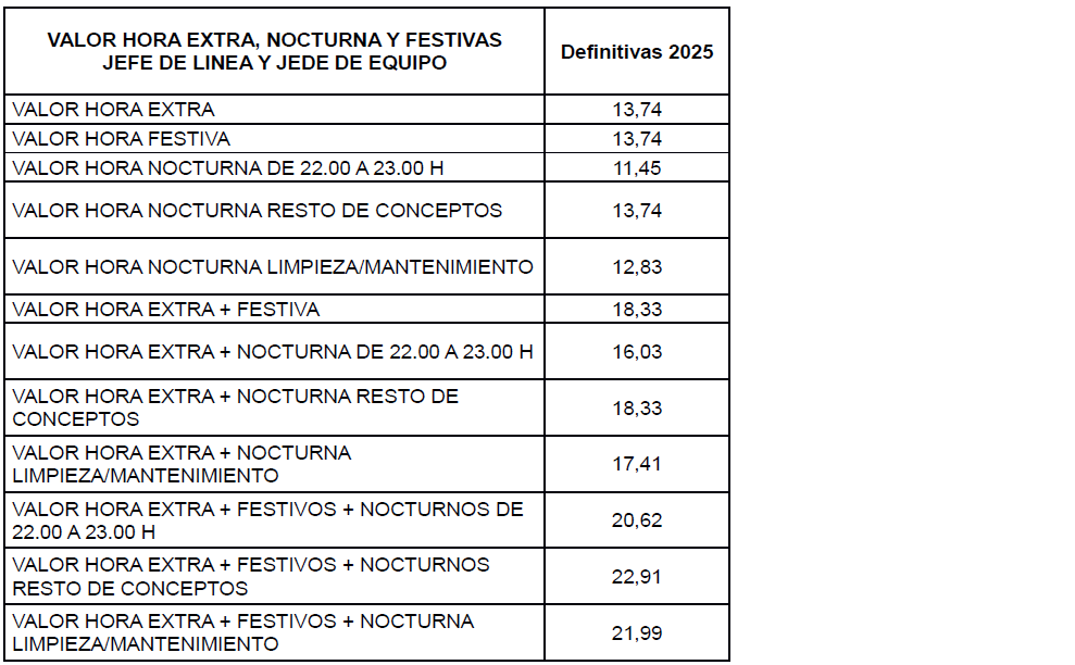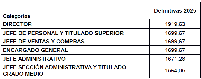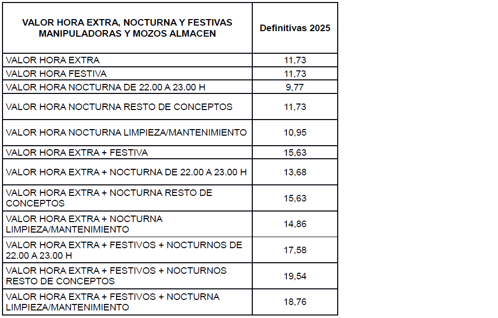 ANEXO II.- TABLAS SALARIALES DE 2025 (de aplicación a partir de 1/1/2026).