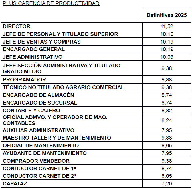 ANEXO III.- PLUS CARENCIA DE PRODUCTIVIDAD.