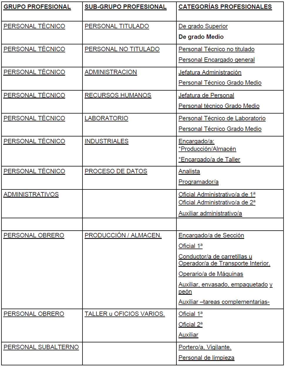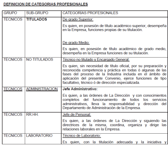 ANEXO I.- CATEGORÍAS PROFESIONALES