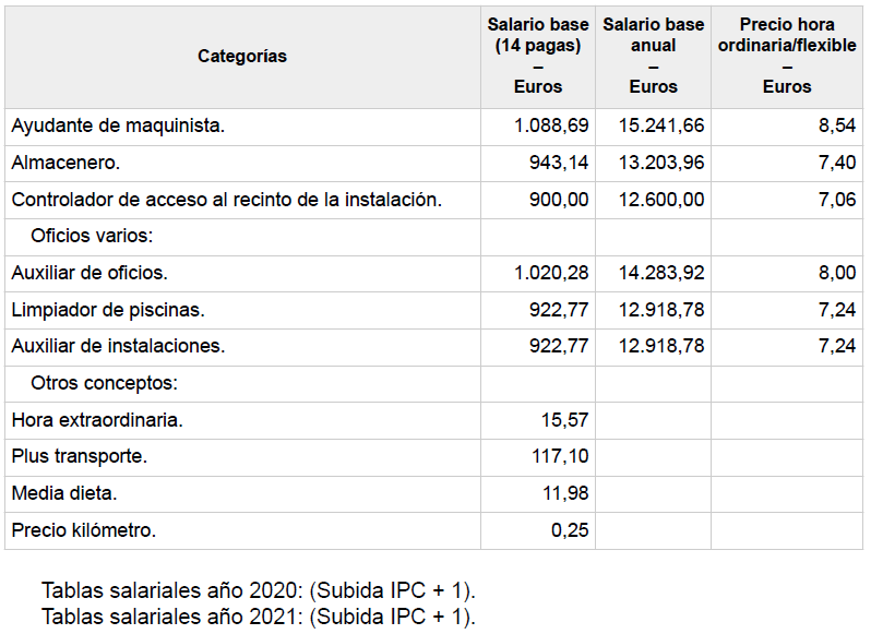 ACTA SUBIDA SALARIAL Y ADECUACIÓN SMI DEL CONVENIO COLECTIVO GENERAL DEL SECTOR DE MANTENIMIENTO Y CONSERVACIÓN DE INSTALACIONES ACUÁTICAS 2020.