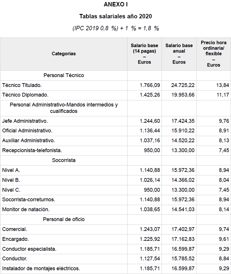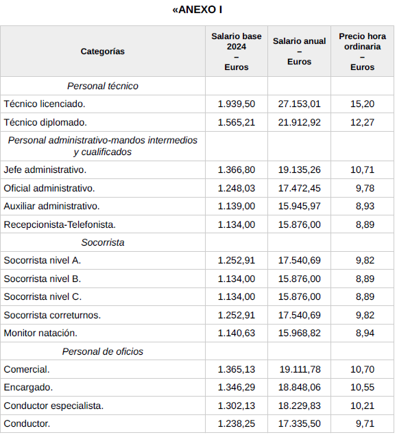 Para el año 2024 el salario base por grupos y categorías serán los que se recogen en el anexo I.