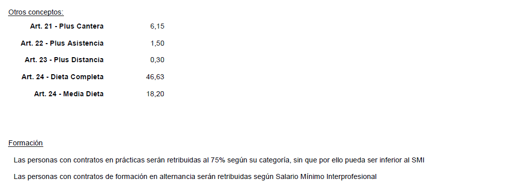 – Pluses extrasalariales: