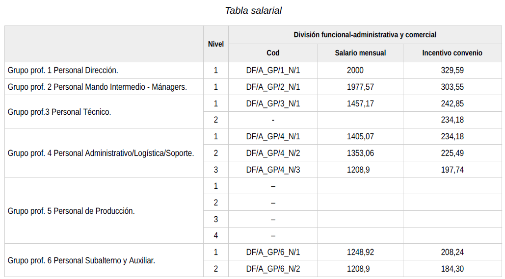 Este grupo se dividirá a su vez en diferentes niveles, de las distintas áreas profesionales.