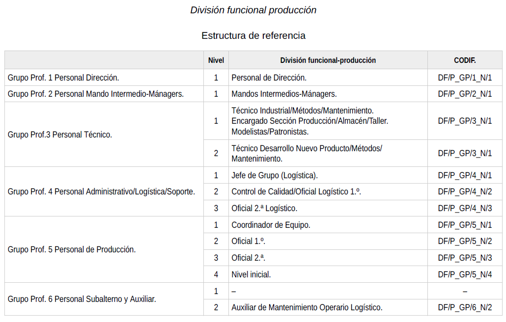 Estructura clasificación profesional.