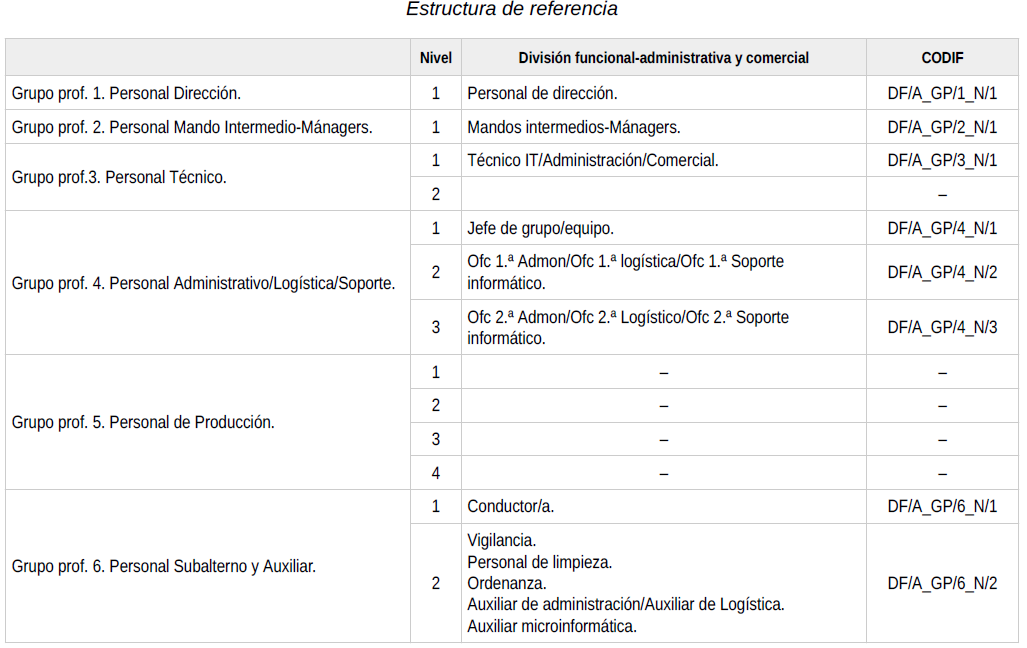 Estructura clasificación profesional.