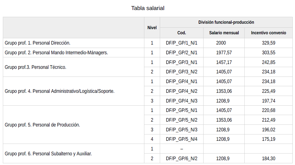 Este grupo se dividirá a su vez en diferentes niveles, de las distintas áreas profesionales.
